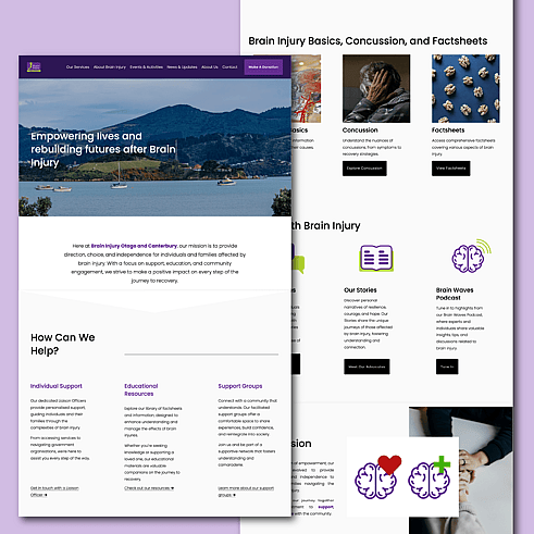Over the past 12 months, we partnered with the Brain Injury Association Otago/Canterbury to revitalise their entire digital footprint. Their previous not-for-profit website, built on Squarespace, was outdated and lacked user focus. Our mission was to transform their online presence through expert not for profit website design to serve their community better and enhance their digital engagement.