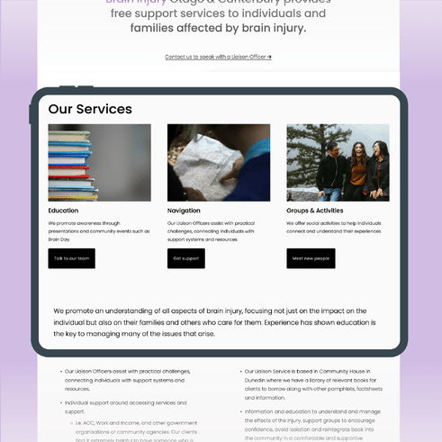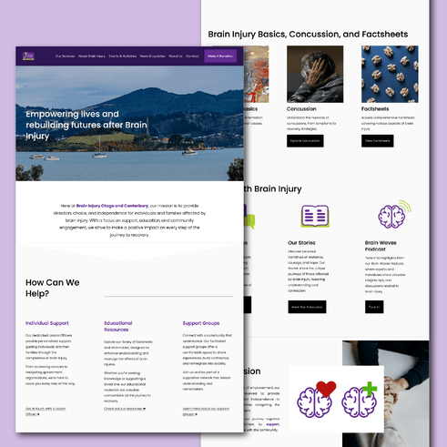Over the past 12 months, we partnered with the Brain Injury Association Otago/Canterbury to revitalise their entire digital footprint. Their previous not-for-profit website, built on Squarespace, was outdated and lacked user focus. Our mission was to transform their online presence through expert not for profit website design to serve their community better and enhance their digital engagement.