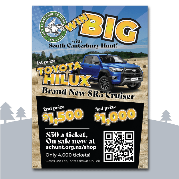 The South Canterbury Hunt aimed to raise significant funds for their group through a raffle featuring an SR5 Toyota Hilux. They needed a robust marketing campaign to maximise ticket sales and achieve their fundraising goal of over $100K.